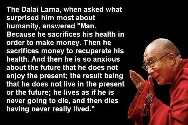 "He lives as if he is never going to die, and then dies having never really lived."